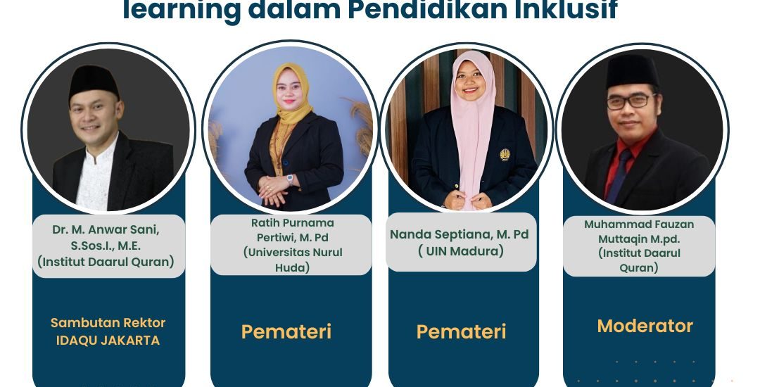 Kuliah tamu ini menghadirkan sejumlah narasumber kompeten di bidang pendidikan dan pengembangan pembelajaran. Acara akan diawali dengan sambutan Rektor IDAQU Jakarta, Dr. M. Anwar Sani, S.Sos.I., M.E. Selanjutnya, materi utama akan disampaikan oleh Ratih Purnama Pertiwi, M.Pd. dari Universitas Nurul Huda dan Nanda Septiana, M.Pd. dari UIN Madura. Adapun kegiatan ini akan dipandu oleh Muhammad Fauzan Muttaqin, M.Pd., dosen Institut Daarul Qur’an, sebagai moderator.