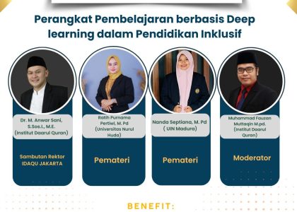 TANGERANG – Dalam upaya meningkatkan kualitas kompetensi akademik dan praktis mahasiswa, Prodi PGMI Fakultas Tarbiyah dan Keguruan (FTK) Institut Daarul Qur’an menyelenggarakan kegiatan Kuliah Tamu yang bertajuk “Pengembangan Kurikulum dan Strategi Pembelajaran yang Efektif di Sekolah”.