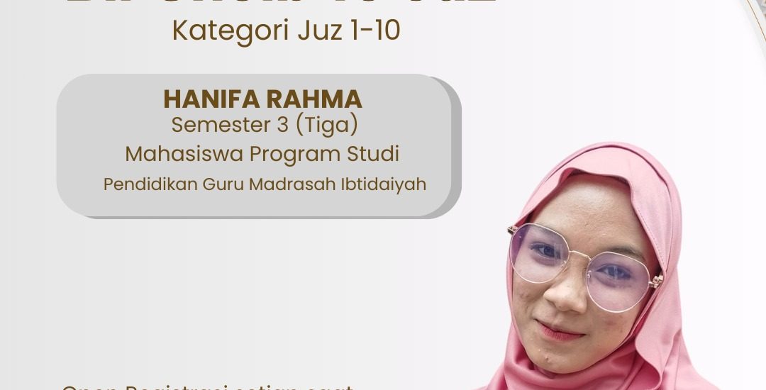 Hanifa Rahma merupakan mahasiswi Semester 3 (tiga) dari Program Studi Pendidikan Guru Madrasah Ibtidaiyah (PGMI). Keberhasilannya dalam melantunkan hafalan 10 juz tanpa melihat mushaf ini menjadi bukti nyata kualitas pendidikan di Idaqu, khususnya melalui program LENTERA (Lembaga Tahfizh Qur’an).